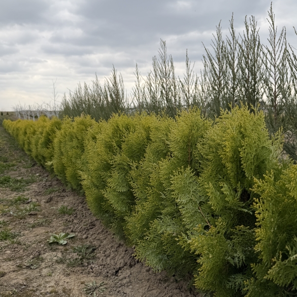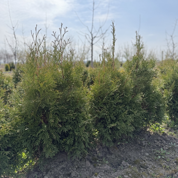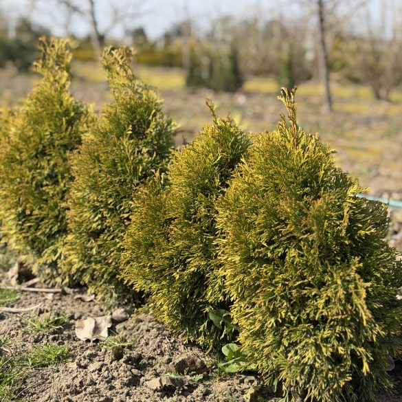 | Декоративна карликова туя з конусоподібною кроною, яка за 10 років виростає приблизно до 0,8 м. у висоту та 0,5-0,8 м. в ширину. Максимально такі туї виростають до 1-1,2 м. у висоту за весь період росту. Любить сонячне місце або легку тінь. Саджанці з відкритого грунту. Висота саджанців +-40 см. |
