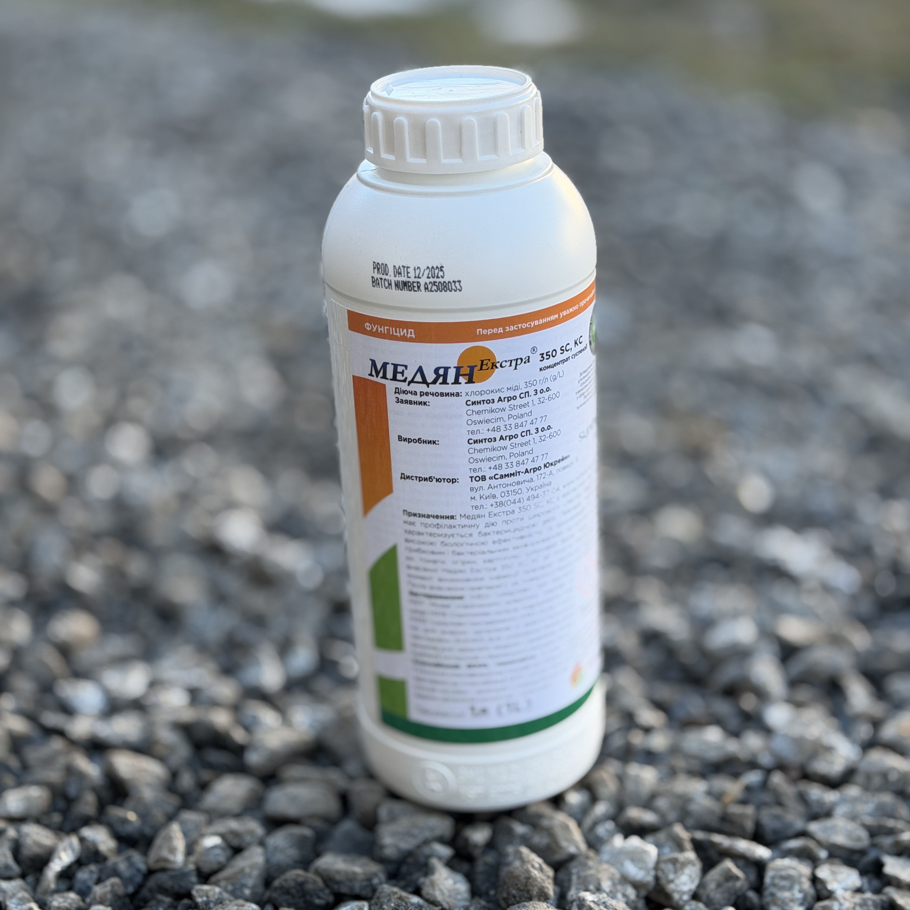 | Медян Екстра 350 SC, КС Власне фасування. Діюча речовина хлорокис міді, 350 г./л. -препарат має широкий спектр -протигрибкової та бактерицидної дії; -має зручну у використанні рідку препаративну форму; -безпечний для всіх культурних рослин; -продукт сертифікований для використання в органічному землеробстві, що підтверджено «Органік Стандарт»; -препарат широко застосовують у інтегрованих системах захисту плодових та ягідних культур. Норми витрат 40 мл. на 10 л. води. |